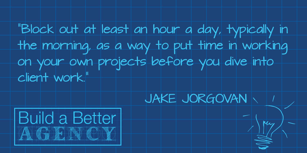 “Block out at least an hour a day as a way to put time in working on your own projects.” – @JakeJorgovan Share on X