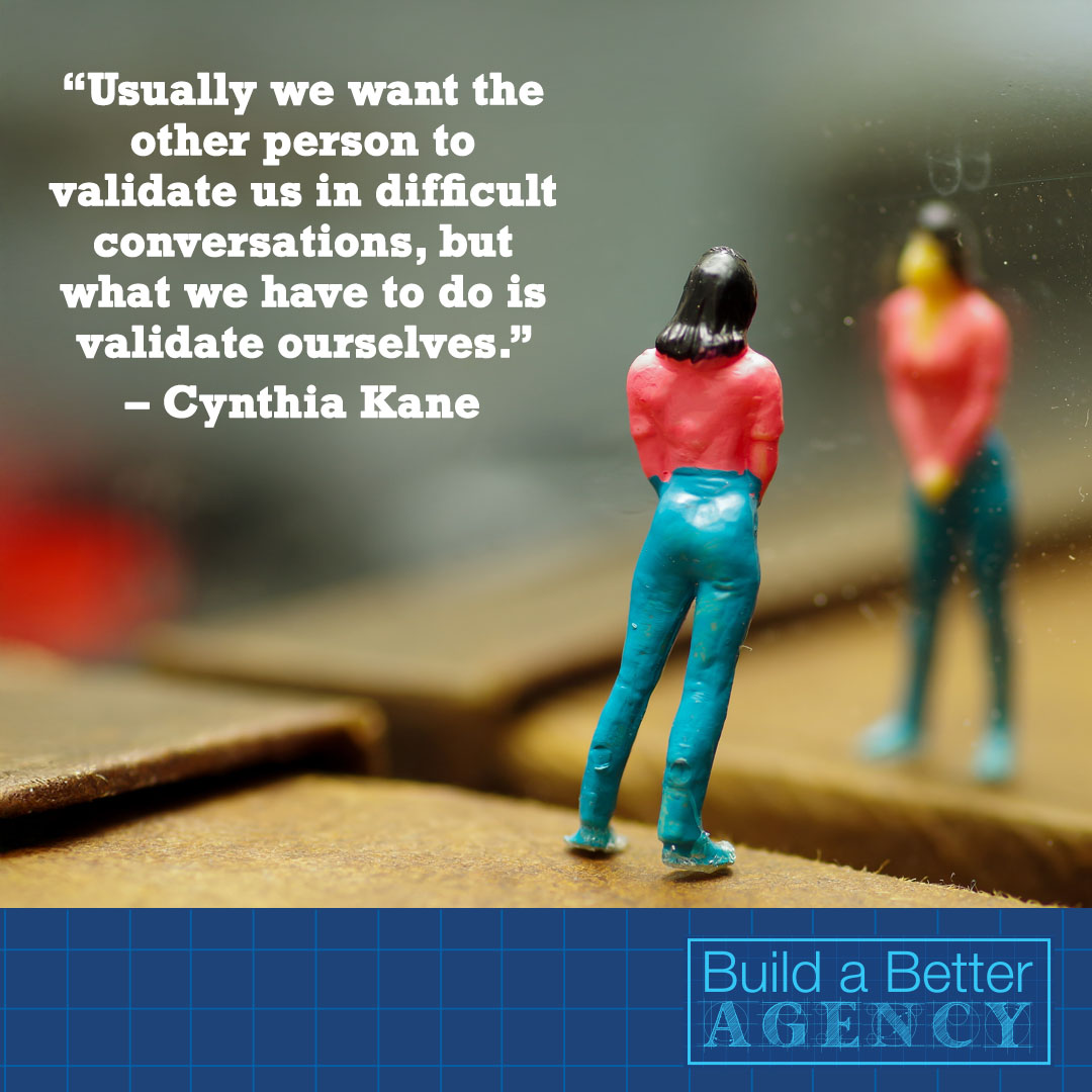 “Usually we want the other person to validate us in difficult conversations, but what we have to do is validate ourselves.” - Cynthia Kane Share on X