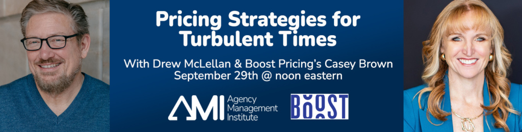 Watch the replay with Drew and Boost Pricing Founder Casey Brown for a dynamic webinar built specifically for creative agencies navigating the new realities of pricing in the age of AI and economic headwinds. We’ll unpack the fear-fueled habits that lead to unnecessary discounting and show you how to shift into confident, value-based pricing, even when demand is down.